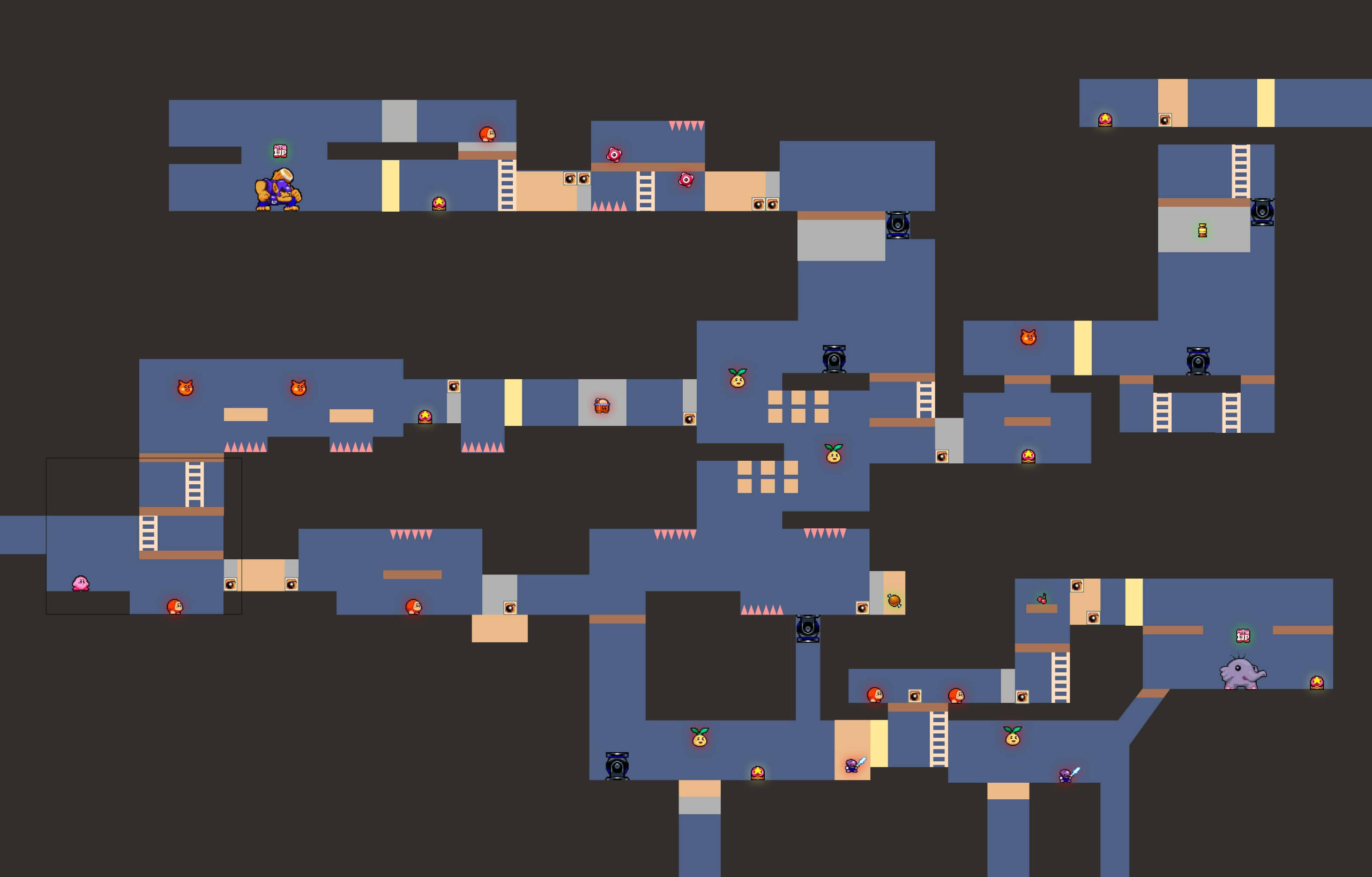 Re-creation level design for Kirby & The Amazing Mirror for practicing player progression design in combat game.
